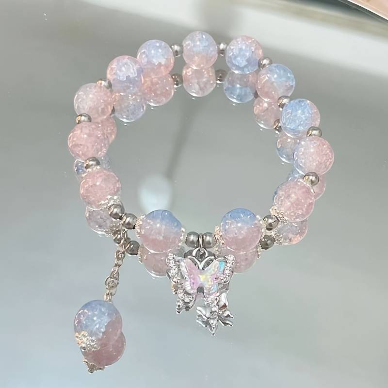 Chic Butterfly Charm Bracelet – Colorful Glass Beads, Fashion Accessory For Teens & Up, Perfect Gift For Best Friends