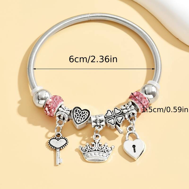 / Pretty Key Lock Crown Pendant Bracelet Alloy Jewellery Vintage Bohemian Style Suitable For Women Valentine’s Day Gift